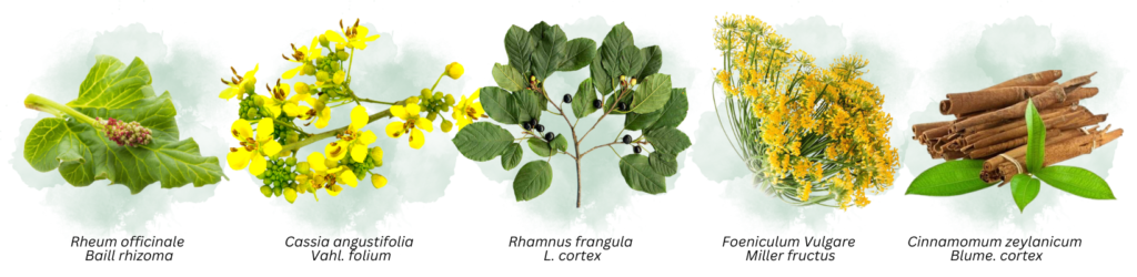 - Krkavina (Rhamnus frangula L. cortex) 80 mg: Krkavina je tradicionalno prepoznata kao prirodni laksativ za što su zaslužni antrakinonski glikozidi, slično kao kod sene.